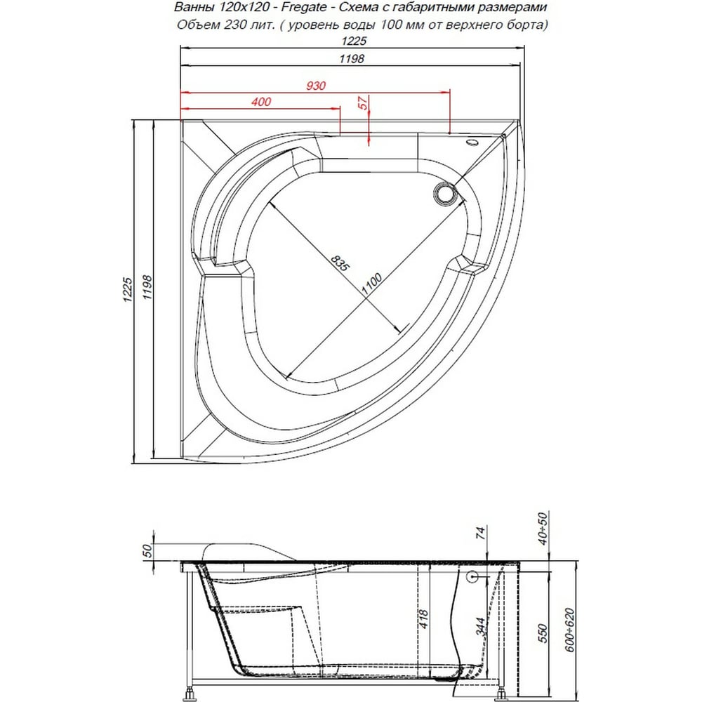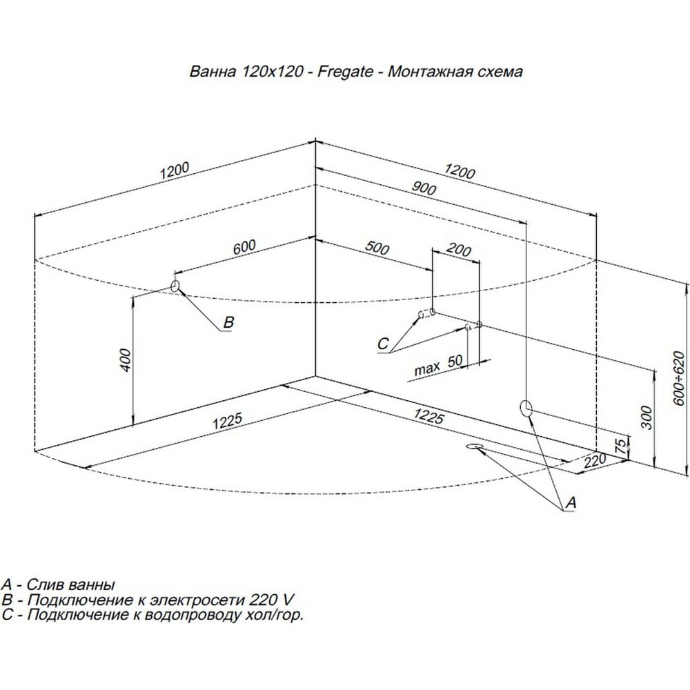 Акриловая ванна Aquanet Fregate 120х120 00203935