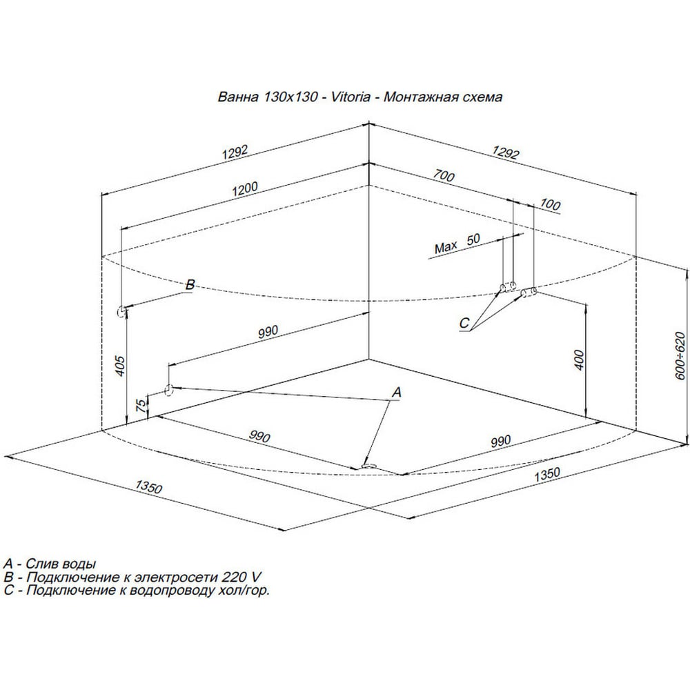 Акриловая ванна Aquanet Vitoria 130х130 00204049