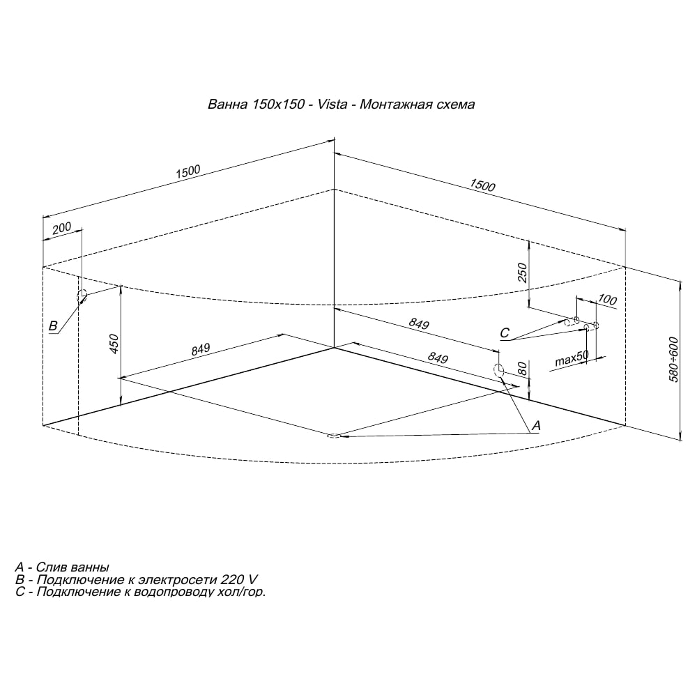Акриловая ванна на каркасе Aquanet Vista 150х150 00254389