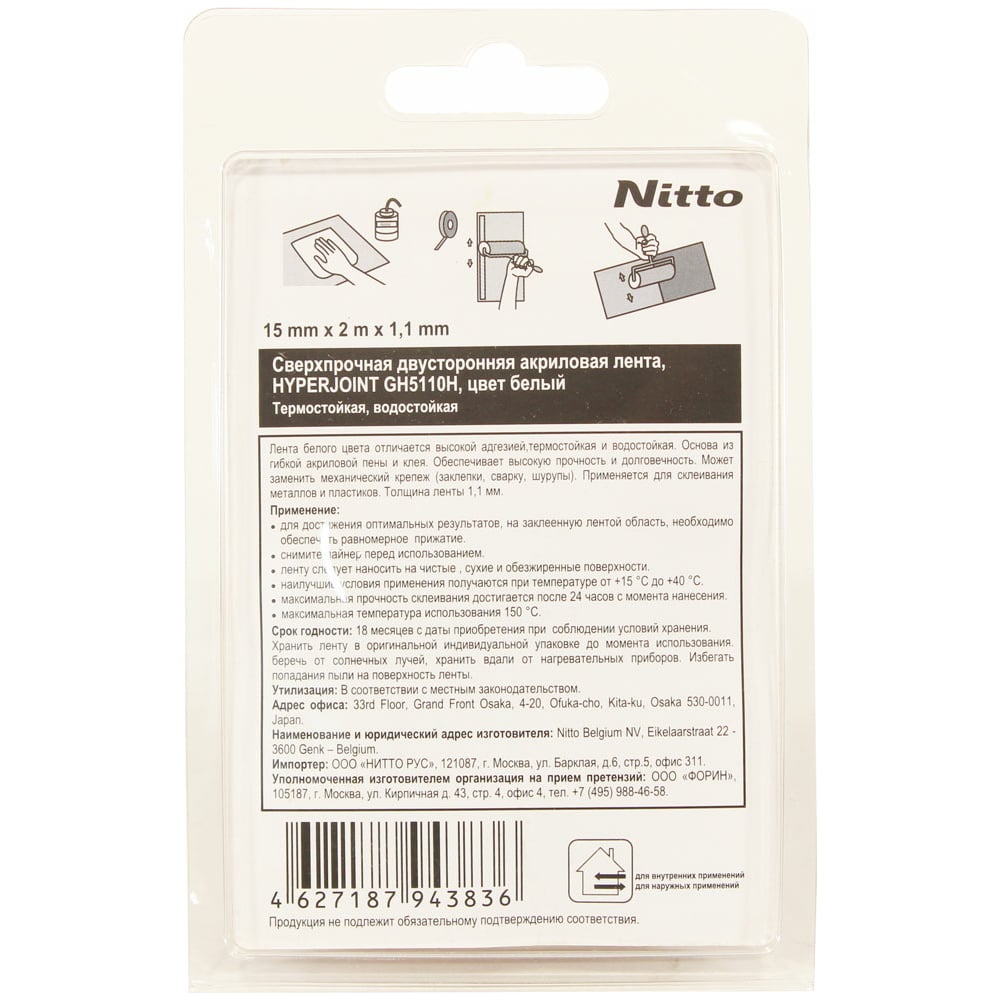 Сверхпрочная двусторонняя акриловая лента Nitto HYPERJOINT GH5110H, 15 мм х 2 м, цвет белый 4627187943836