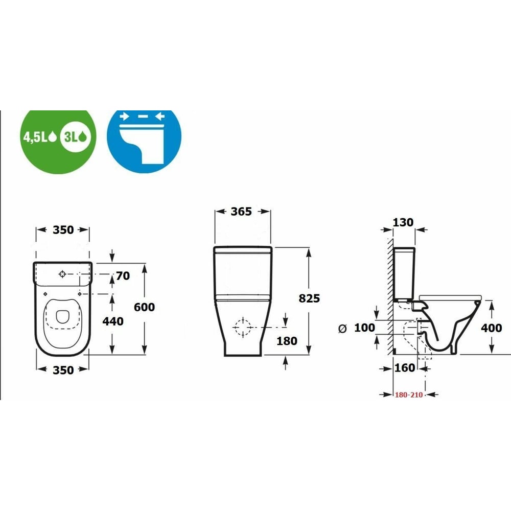 | Объем смыва | 3/6 л |