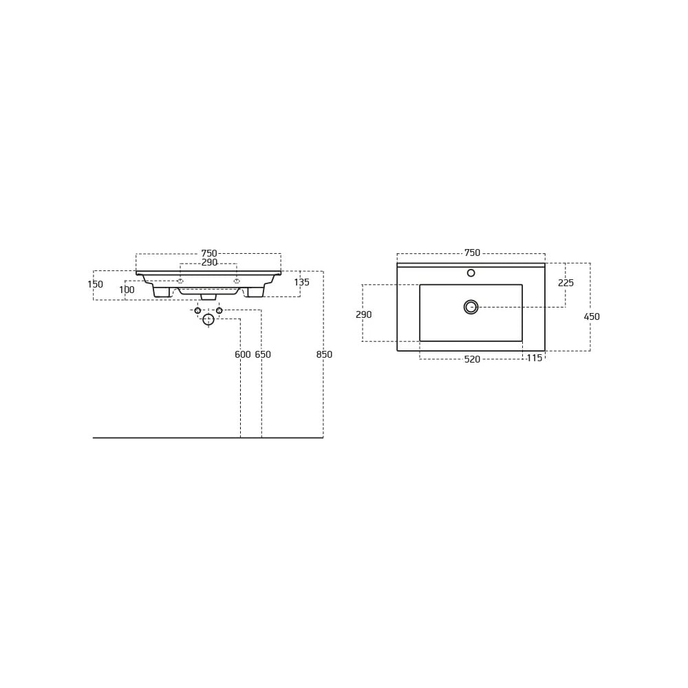 | Ширина раковины | 750 мм |