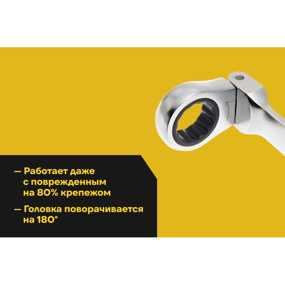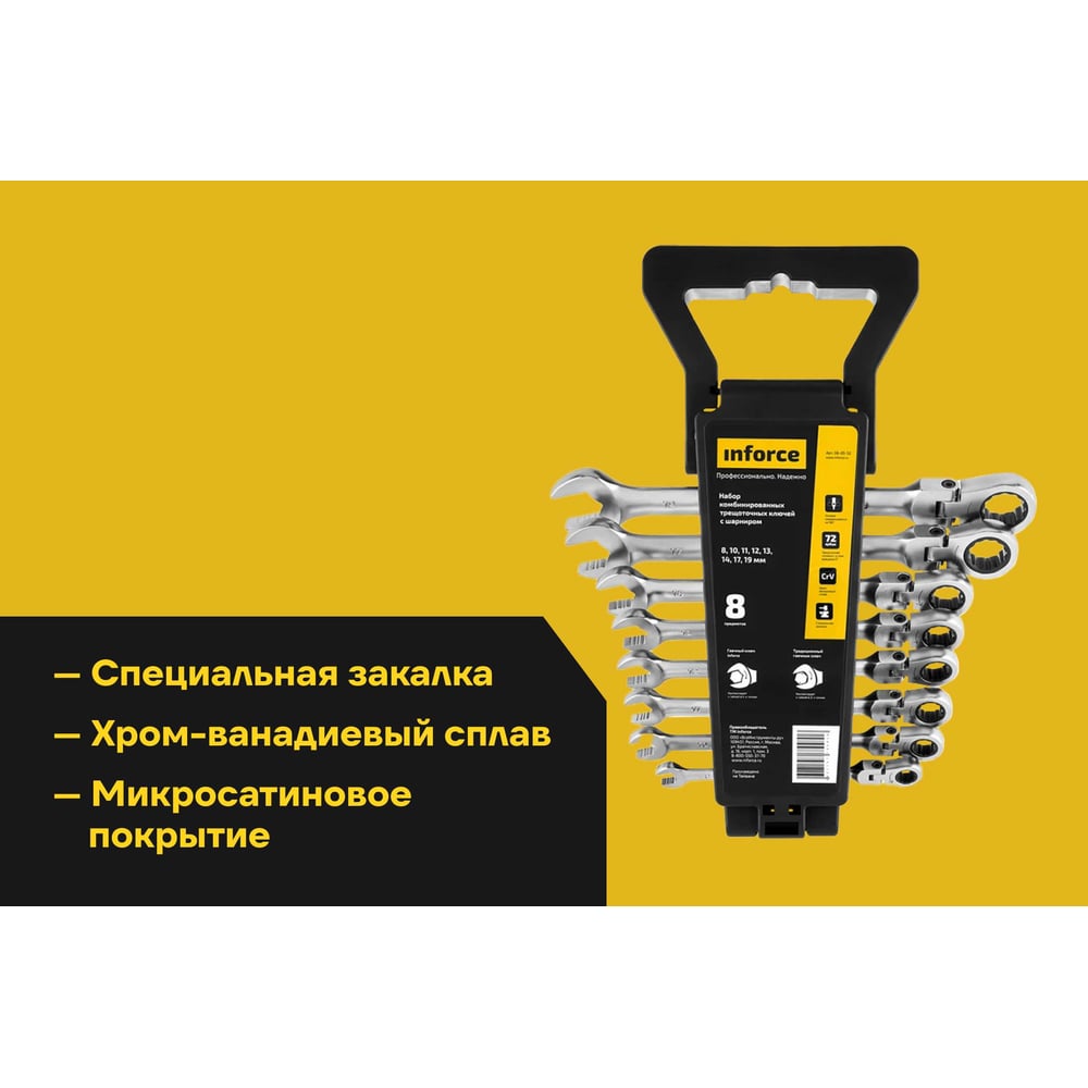 Набор комбинированных шарнирных ключей с трещоткой 8 предметов Inforce, Сталь Cr-V, 8-19мм, 06-05-52