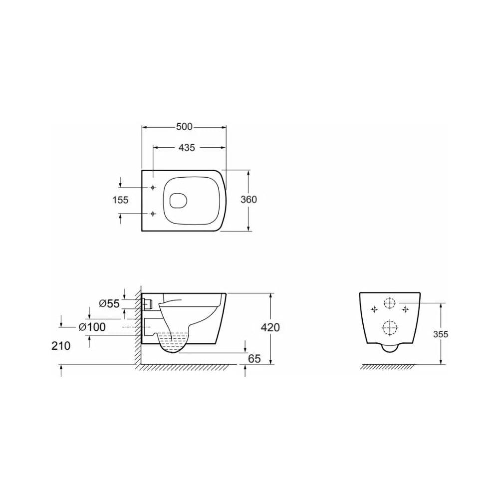 Цвет белый Тип подвесной унитаз Стиль современный Серия Liberty Цвет фурнитуры опция Угловая конструкция нет Высота унитаза 355 мм Ширина унитаза 360 мм Материал унитаза керамика Монтаж настенный Цвет сиденья белый Сиденье в комплекте да Подогрев сиденья нет Система антивсплеск да Функция биде нет Тип выпуска горизонтальный Механизм слива воды определяется системой инсталляции Безободковый да Наличие микролифта есть Режим слива воды определяется системой инсталляции Материал сиденья дюропласт Для детей нет Антибактериальное покрытие нет Для людей с ограниченными возможностями нет Высота чаши унитаза 355 мм Организация слива каскадный слив Подвод воды определяется системой инсталляции Быстросъемное сиденье нет Форма чаши прямоугольная Max расстояние между креплениями 155 мм Min расстояние между креплениями 155 мм Расстояние между креплениями к стене 180 мм Глубина унитаза 500 мм Импульсный смыв нет
