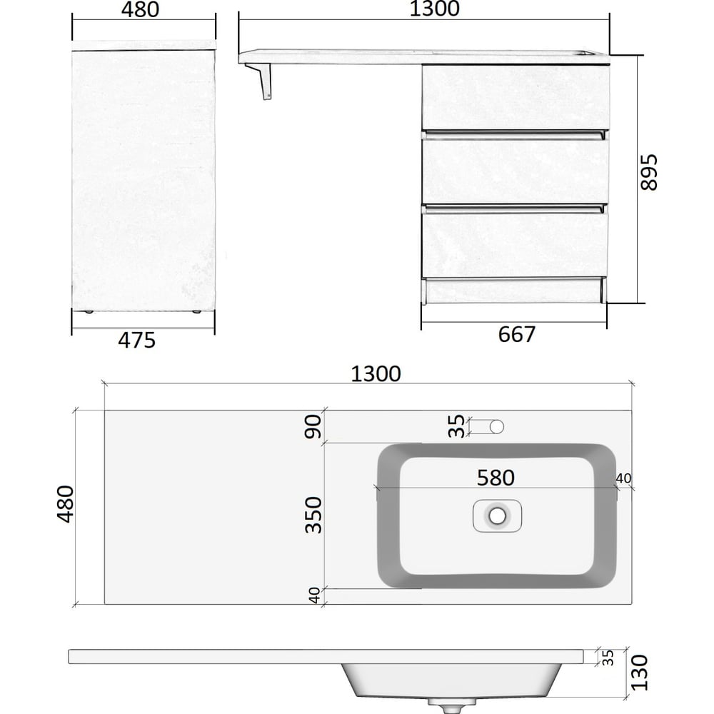 Напольная тумба с правой раковиной под стиральную машину ORANGE OPTIMA OP-70TUW+RAR