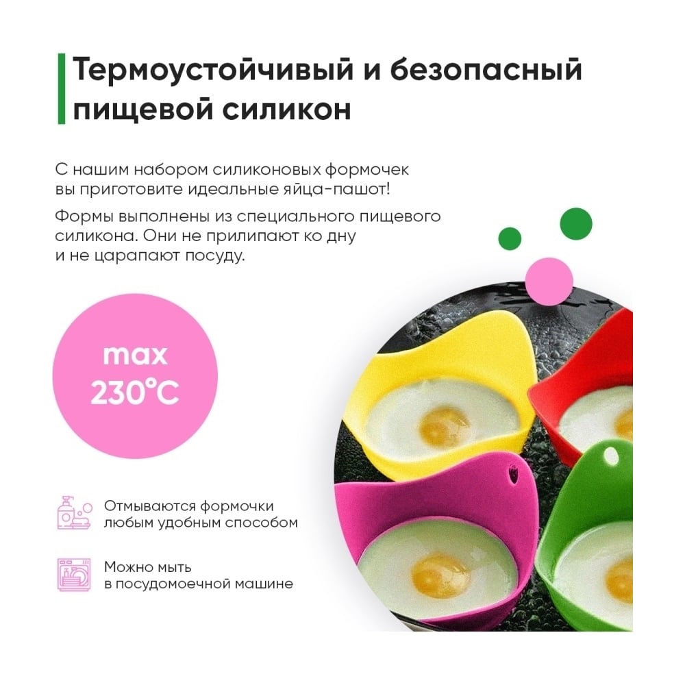Форма для приготовления яиц пашот ZDK из 4 шт, желтый, розовый, зелёный, красный 89650
