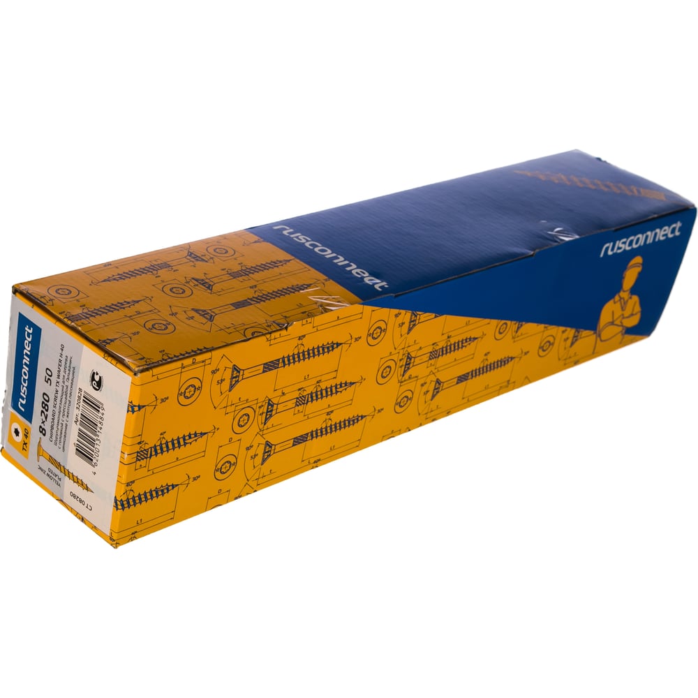 Шуруп Rusconnect CT 08280 с/нарез. д/дерева, прессшайба 8х280 50 шт. Желтый цинк 320828