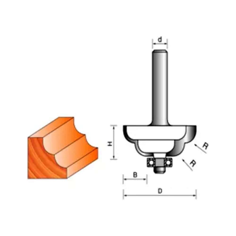 Фреза кромочная калевочная с нижним подшипником СТФ-2010 45х18х8 мм, R 8 мм Strong стф-20100045