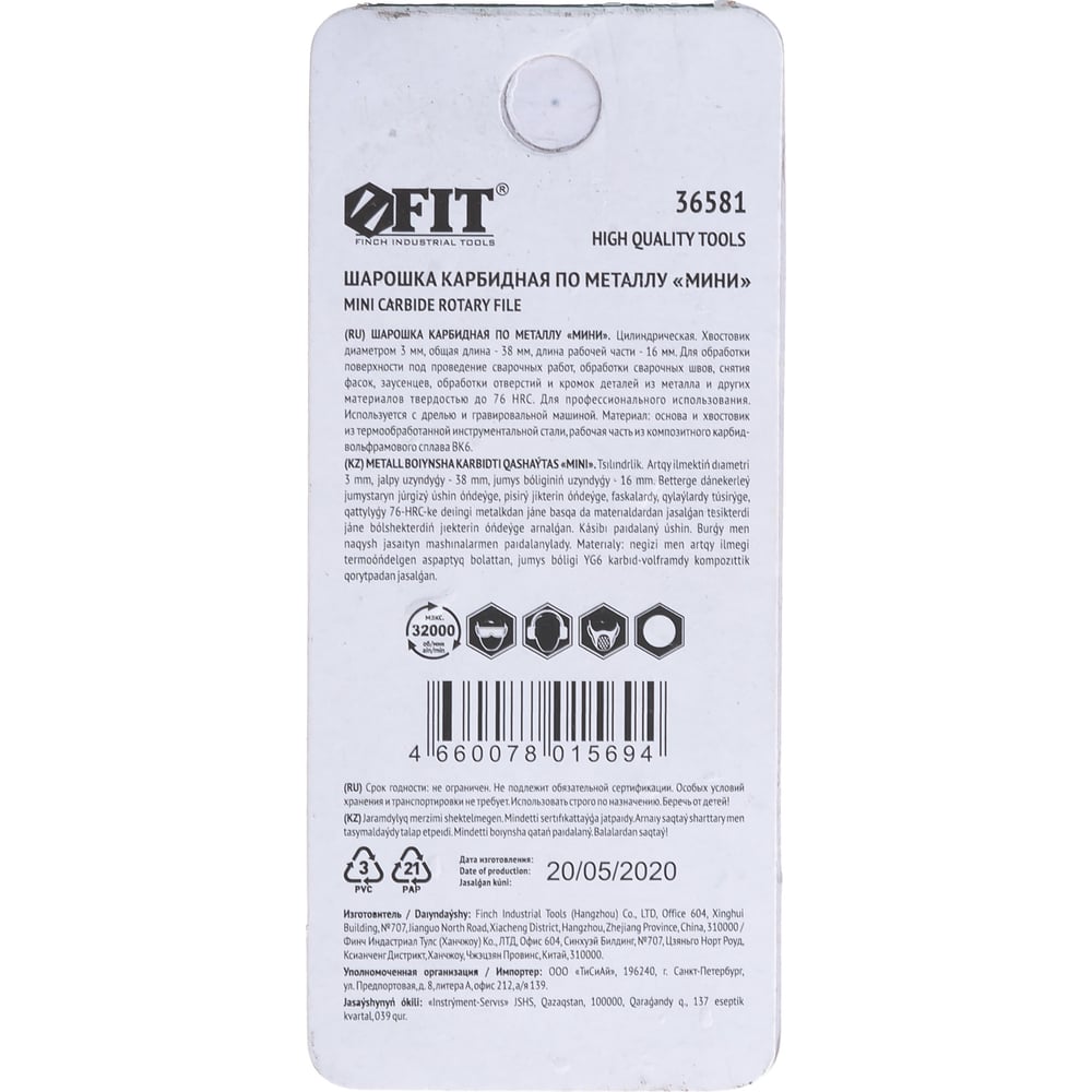 Шарошка карбидная цилиндрическая для прямошлифовальных машин FIT HQ 36581