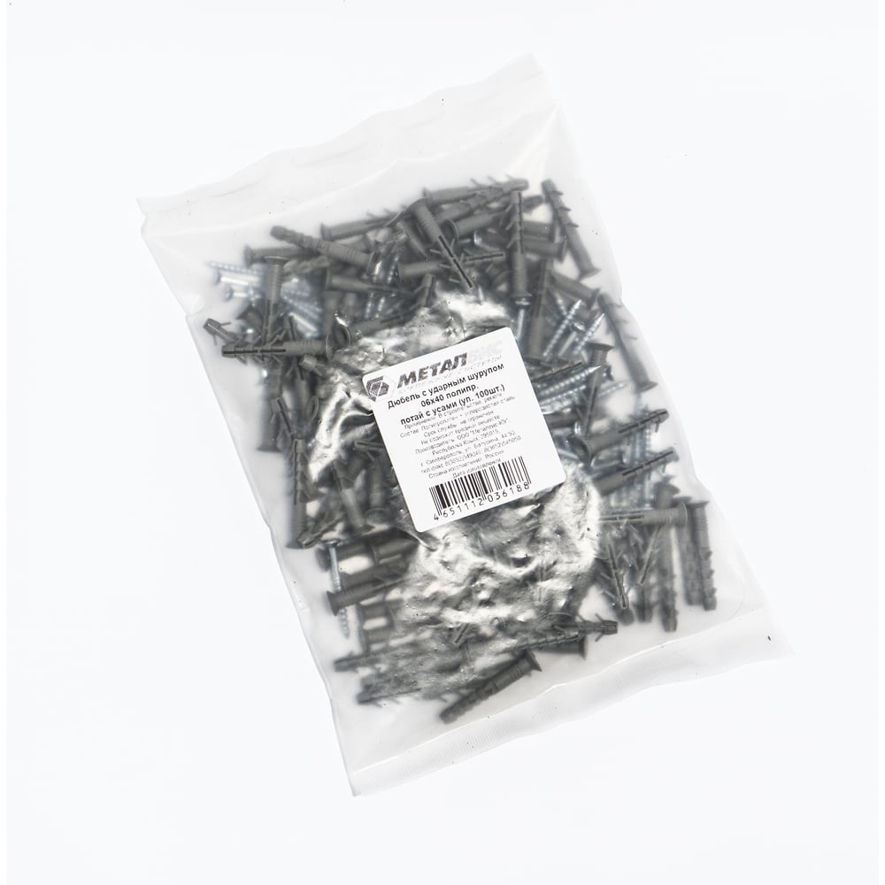 Дюбель с ударным шурупом МВИС Крепежные системы дюбель-гвоздь с усами, 6x40 мм, полипропилен, потай., 100 шт. ДБМ0640П