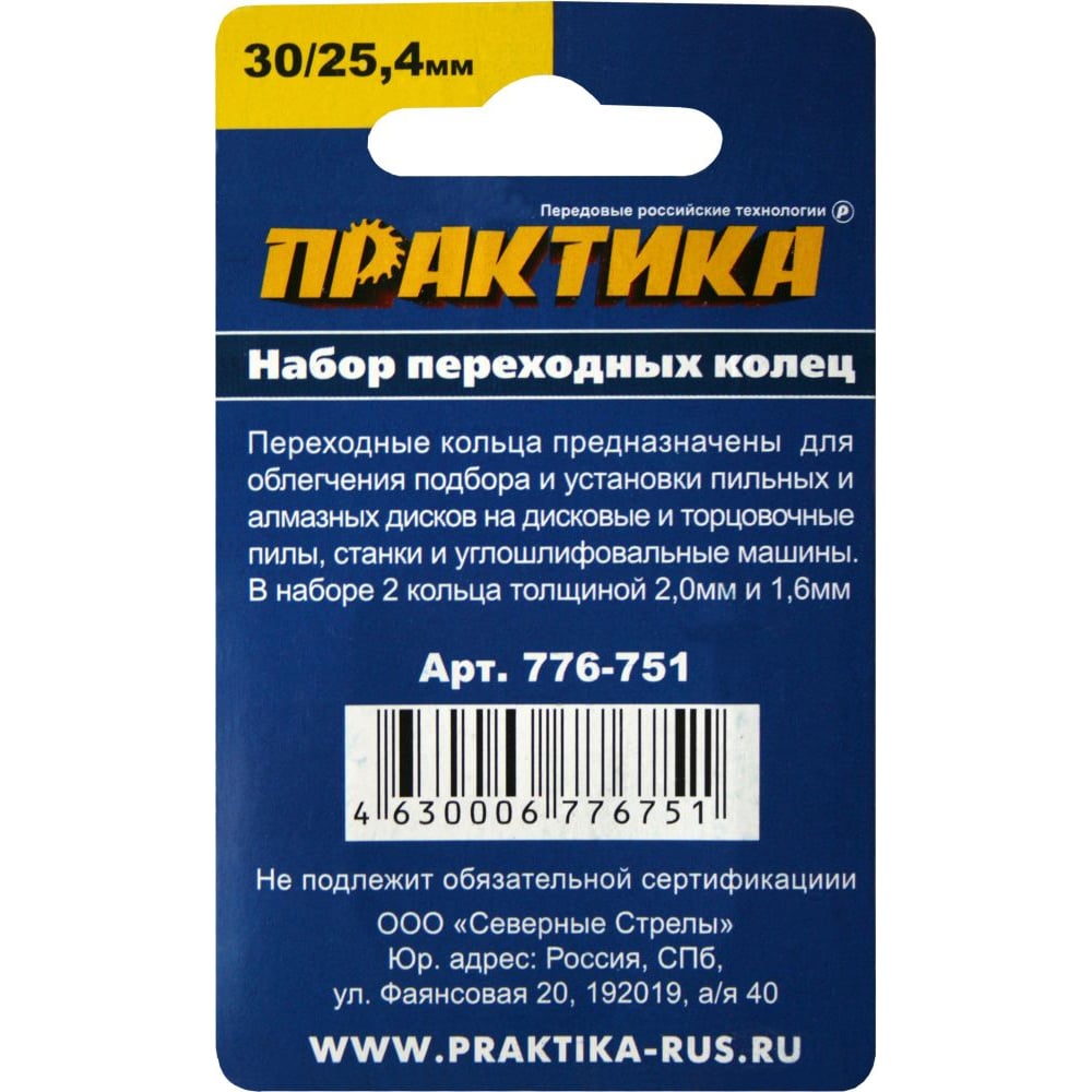 Кольцо переходное (30/25.4 мм) для дисков ПРАКТИКА 776-751