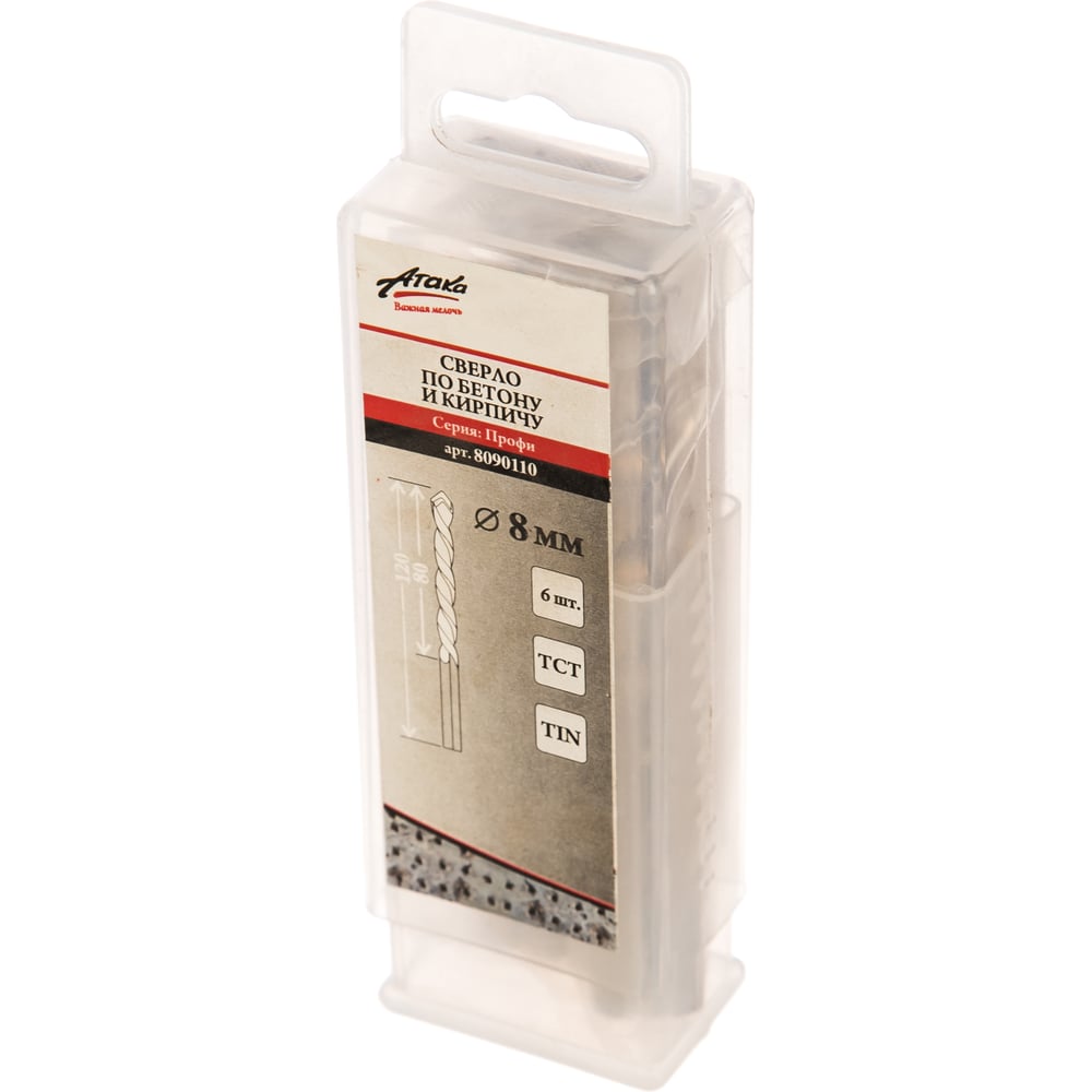 Сверло по бетону (6 шт; 8х120 мм; титан) профи Атака 8090110
