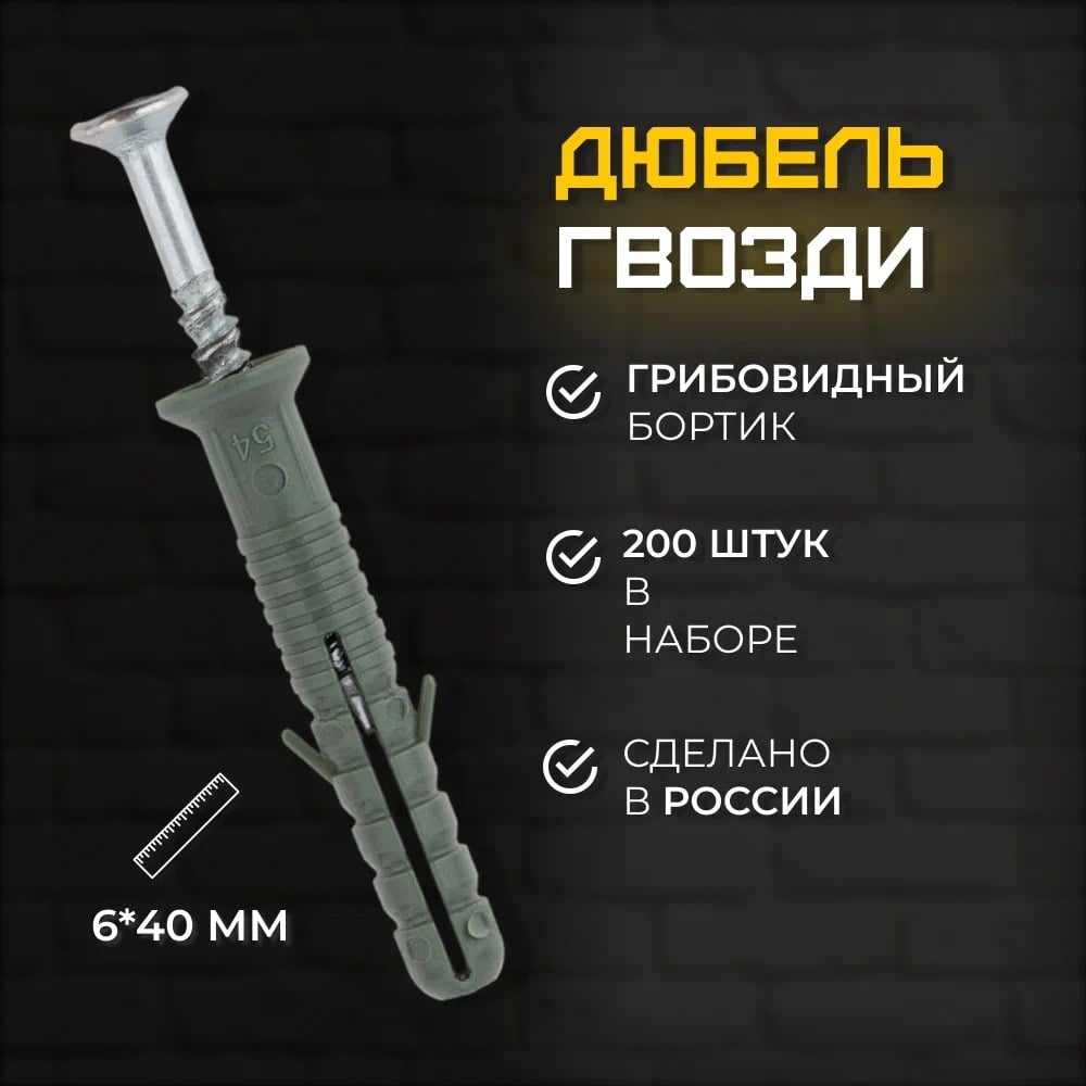 Дюбель-гвоздь КЭС 6x40 мм потайной 200 шт 60100001