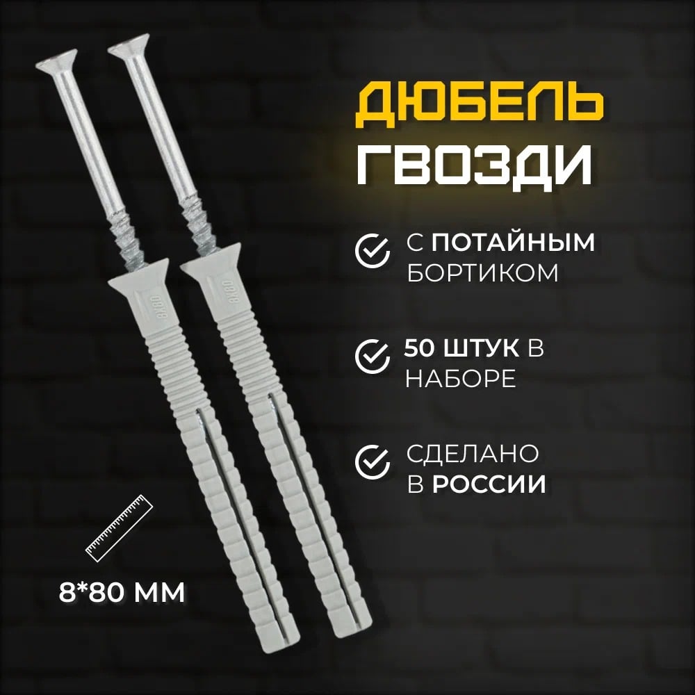Дюбель-гвоздь КЭС 8x80 мм потайной 50 шт 60100005