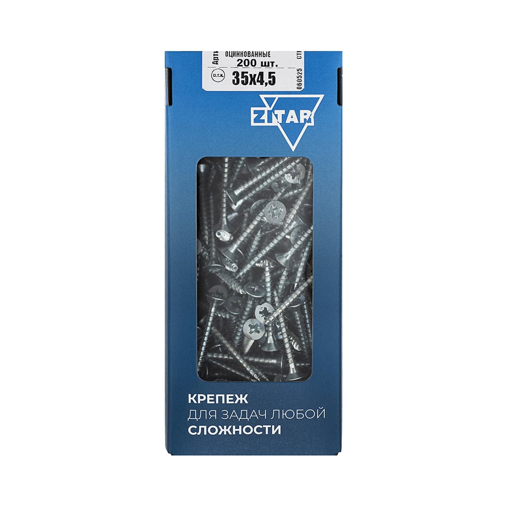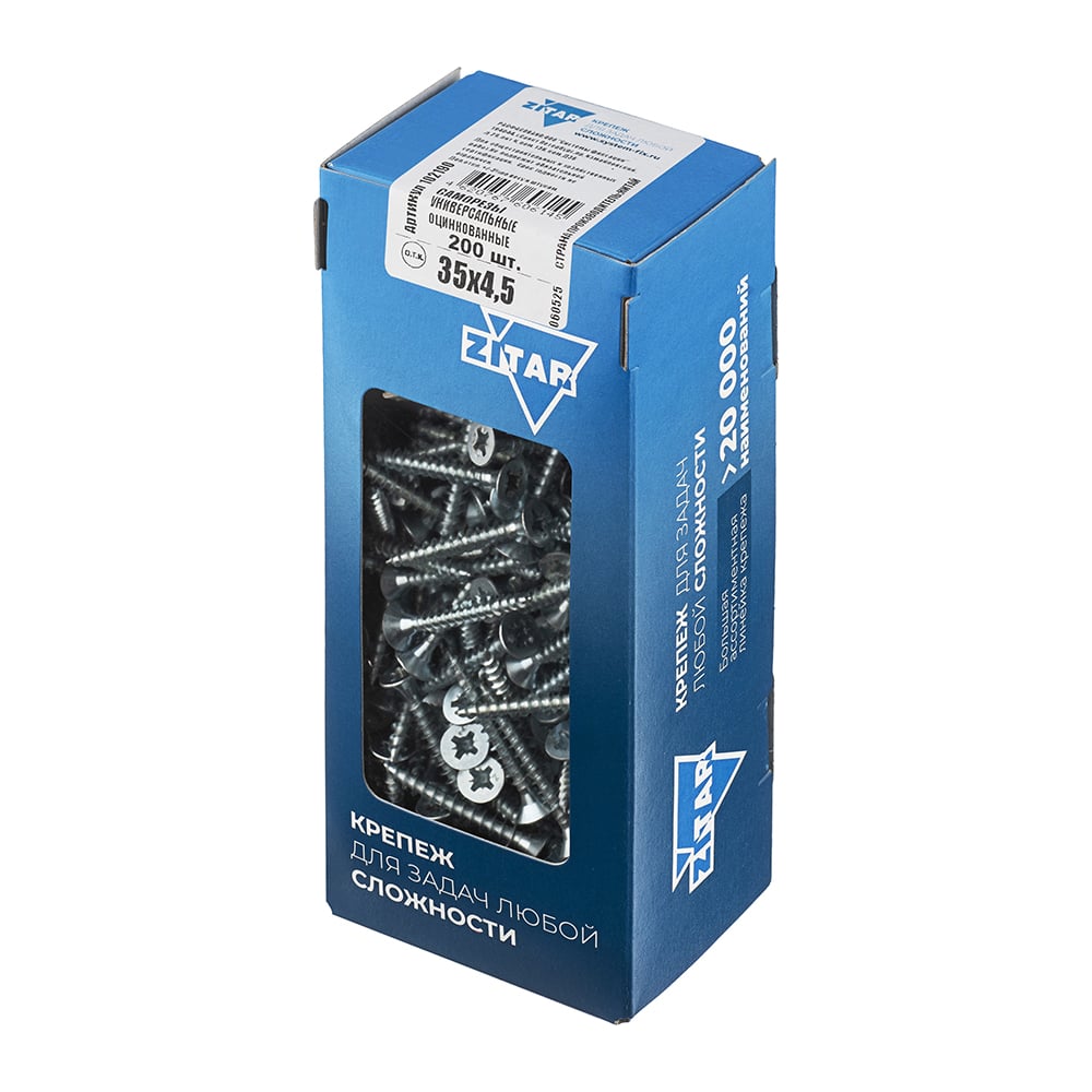 Универсальный саморез Zitar 35х4,5 мм 200 шт оцинкованный, коробка с окном 102190