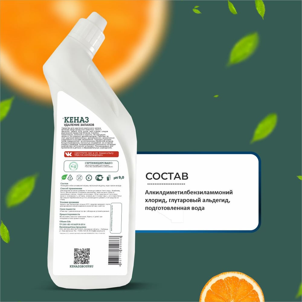 Биоразлагаемое средство для удаления неприятных запахов КЕНАЗ 809868