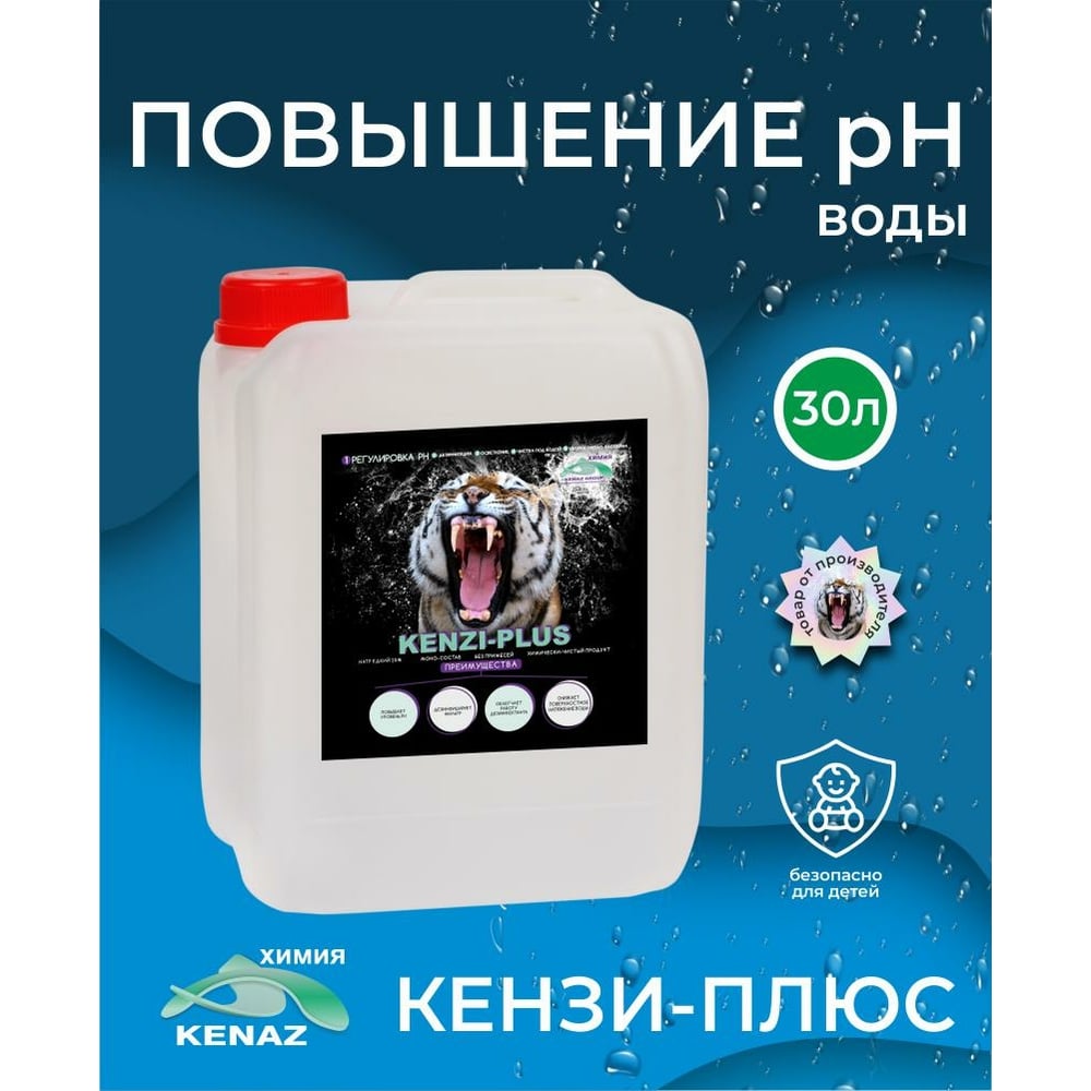 Средство для повышения уровня рН КЕНАЗ КЕНЗИ-ПЛЮС для бассейна, 30 л 809264