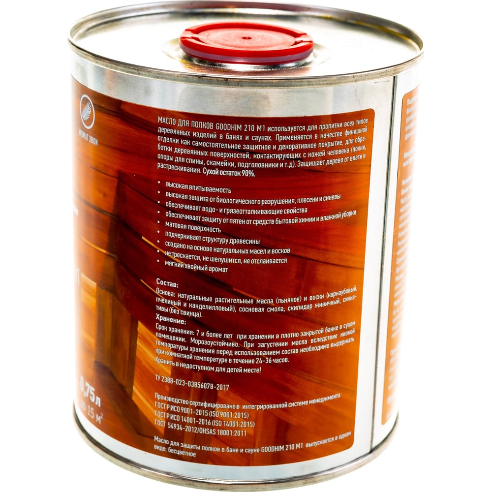 Масло для защиты полков в бане и сауне Goodhim запах хвои, 0,75 л. 58266