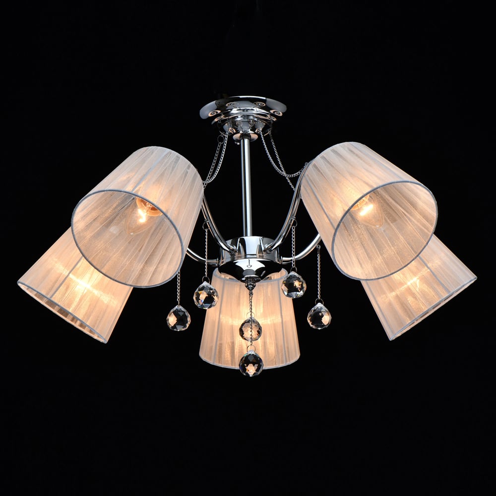 Тип накладные Лампа в комплекте нет Мощность светильника 300 Вт Цоколь E27 Тип лампы накаливания Защита от пыли и влаги IP20 Стиль современный Материал плафона текстиль Коллекция Лацио Цвет плафона белый Тип крепления планка Цветопередача не применимо Ra Количество ламп 5 Высота 34 см Мощность лампочки 60 Вт Площадь освещения 15 м² Напряжение питания 220В Регулировка яркости нет Материал арматуры металл Цвет арматуры хром Трансформатор в комплекте нет Провод провод без вилки Основной цвет хром Диаметр 60 см Тип плафонов цветной Поверхность арматуры глянцевая Поверхность плафонов матовая LED-подсветка нет