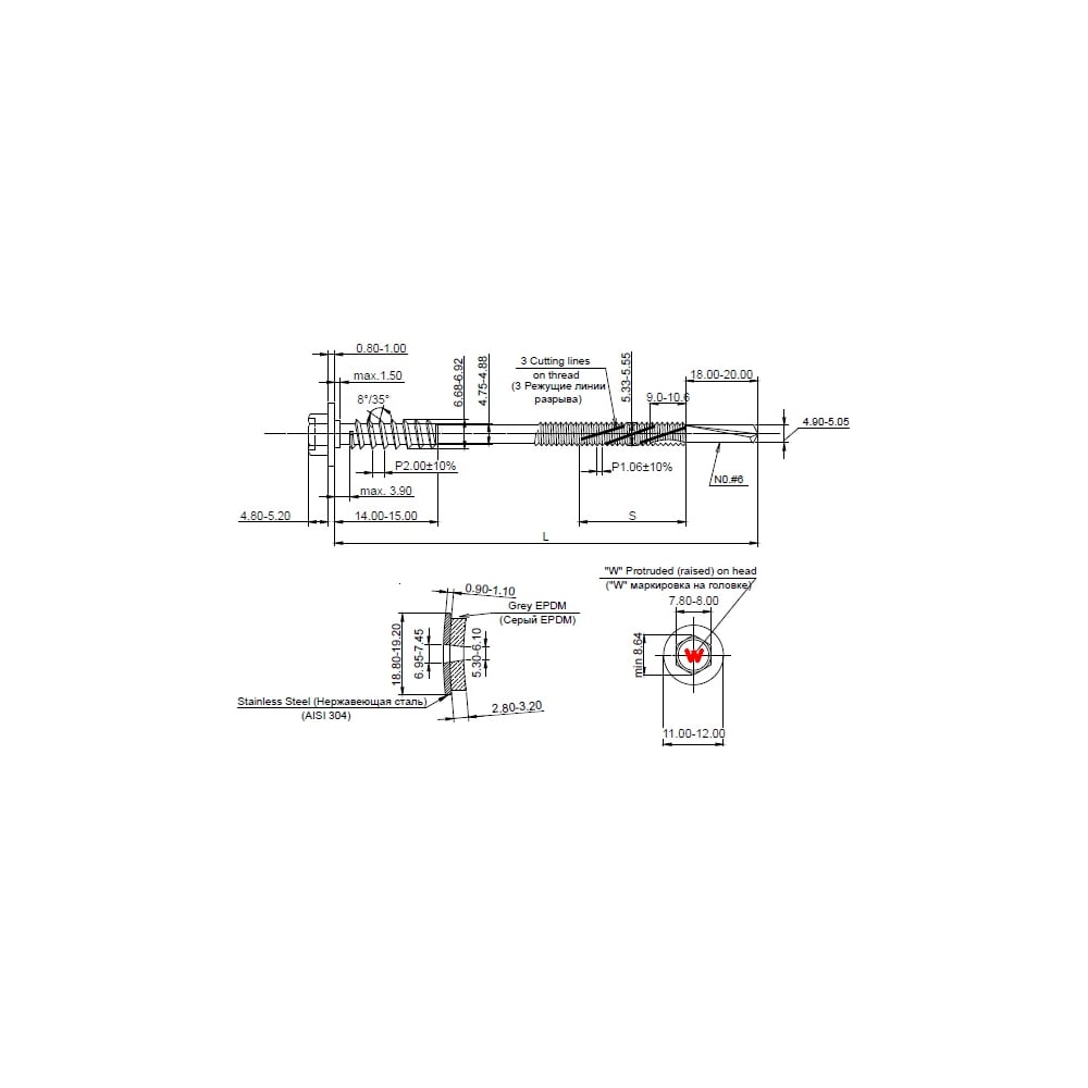 | Форма головки | шестигранная |