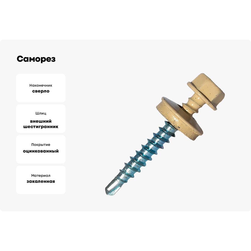 Саморез кровельный по дереву HARDWEX ТМ HWX2-W-P5-4.8x70 мм, св.№1, RAL 1014, 100 шт. 5190000023217