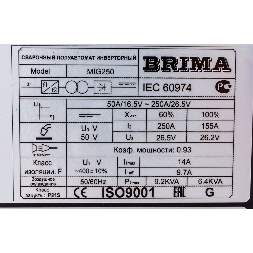 Инверторный сварочный полуавтомат Brima MIG-250 380В 0006657