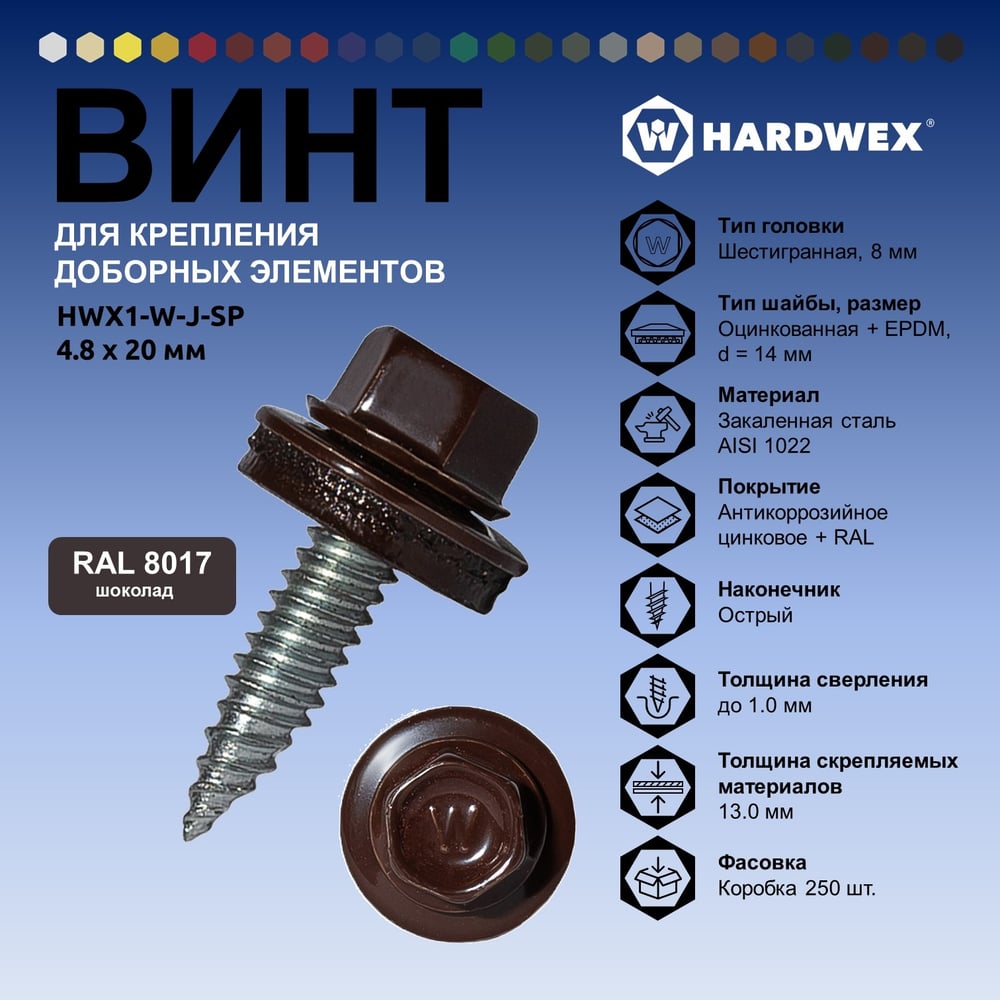 ТМ HWX1-W-J-SP-4.8x20 мм., RAL 8017 (250 шт.)