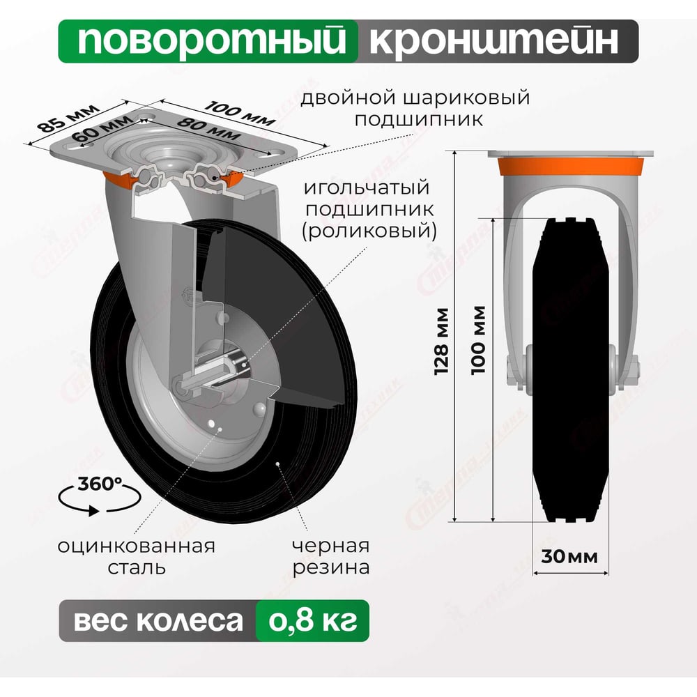 Колесо с вращающейся опорой и пластиной крепления (100 мм; 80 кг) Tellure rota 535102