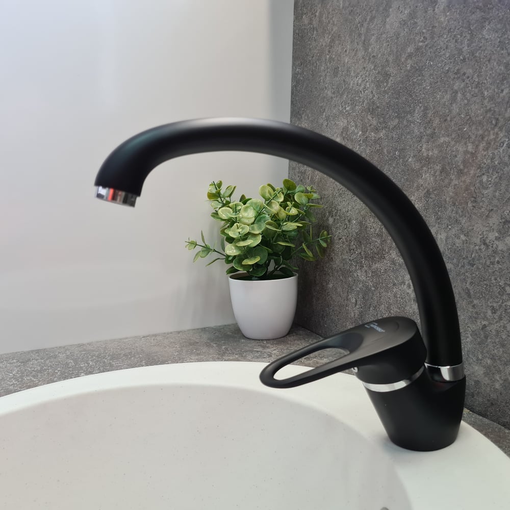 Смеситель для кухни (мойки) INGROSSO черный, высокий излив, картридж 40 мм, гайка 599-25-6 УТ-00041742