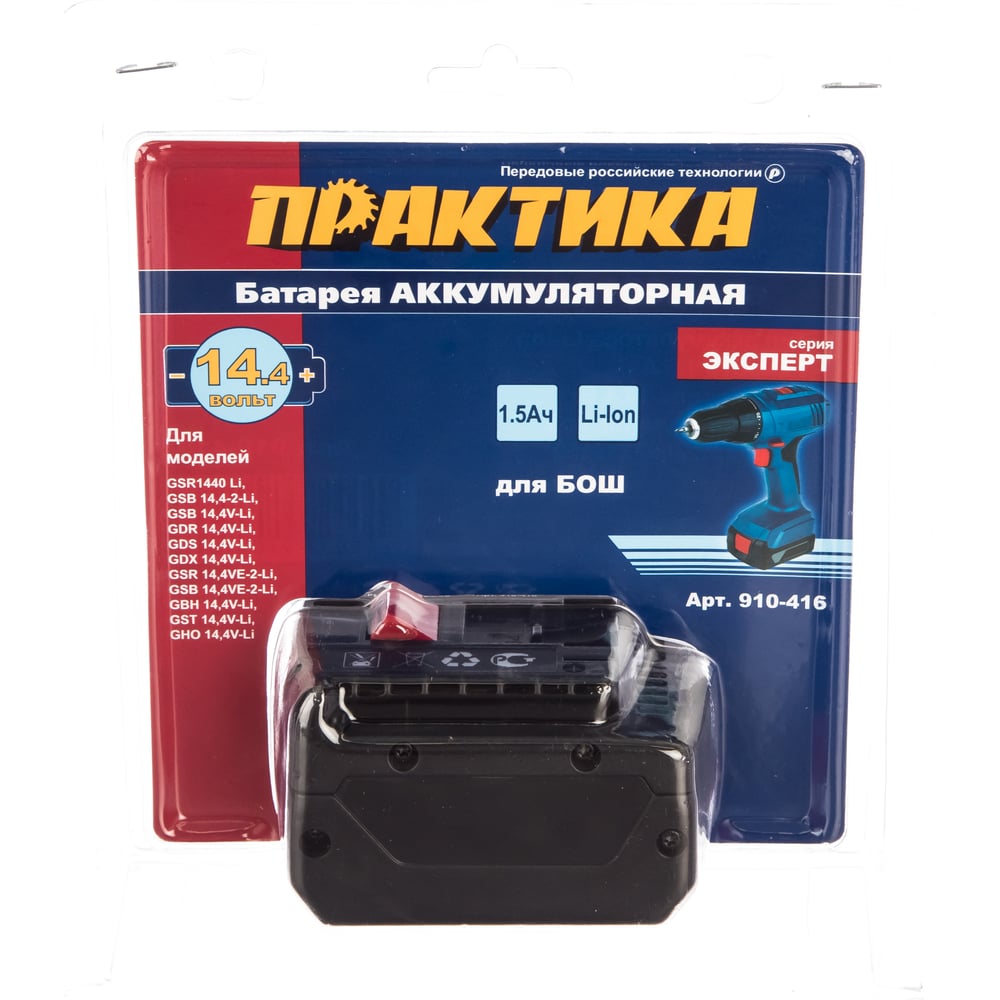 Аккумулятор для BOSCH 14.4 В, 1.5 Ач, Li-ION, блистер ПРАКТИКА 910-416