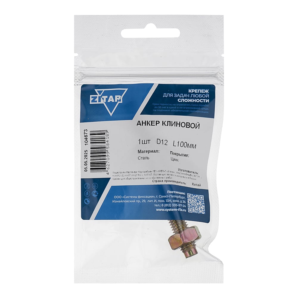 Клиновой анкер 12x100 мм, 1 шт, пакет Zitar 104673
