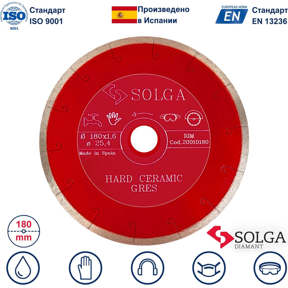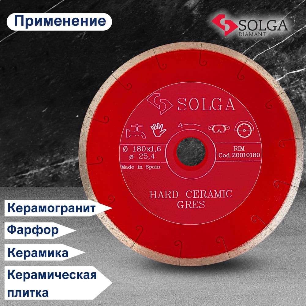Диск алмазный сплошной (180 мм х 25,4/22,2 мм) HARD CERAMICS Solga Diamant 20010180