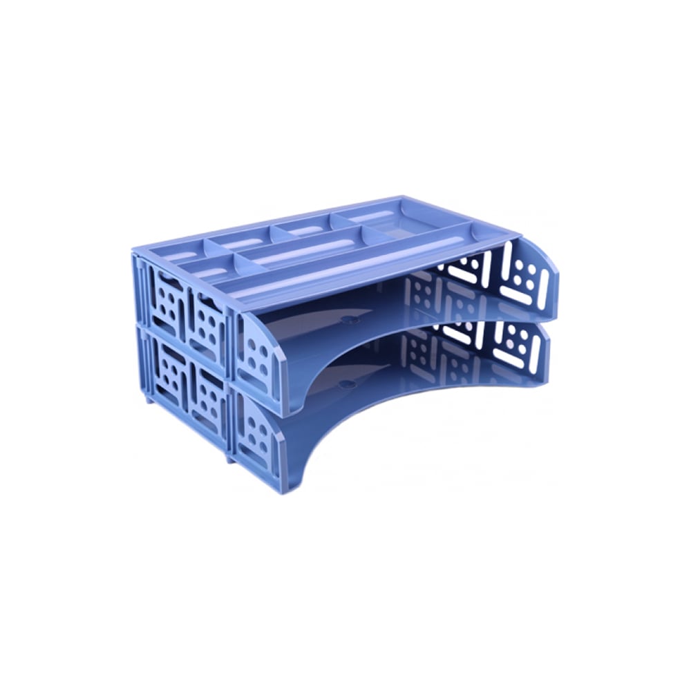 Горизонтальный лоток для бумаг Стамм Field Berlin набор 2 шт + органайзер, голубой ЛТ695