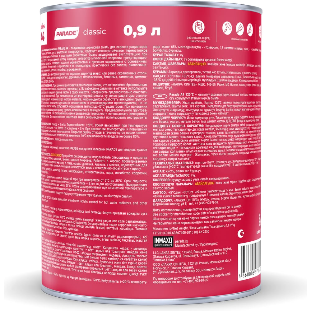 Акриловая эмаль PARADE А4 Радиаторы отопления 90003187636