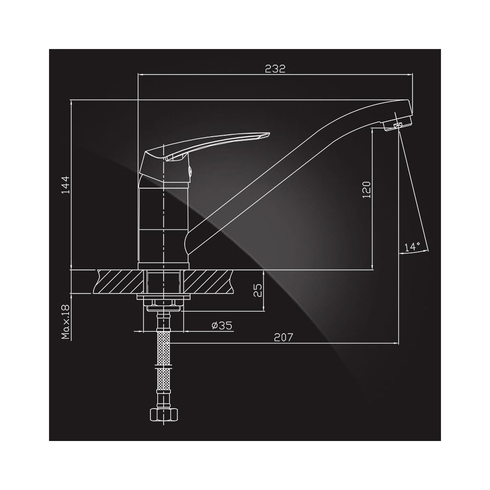 | Длина излива | 207 мм |
