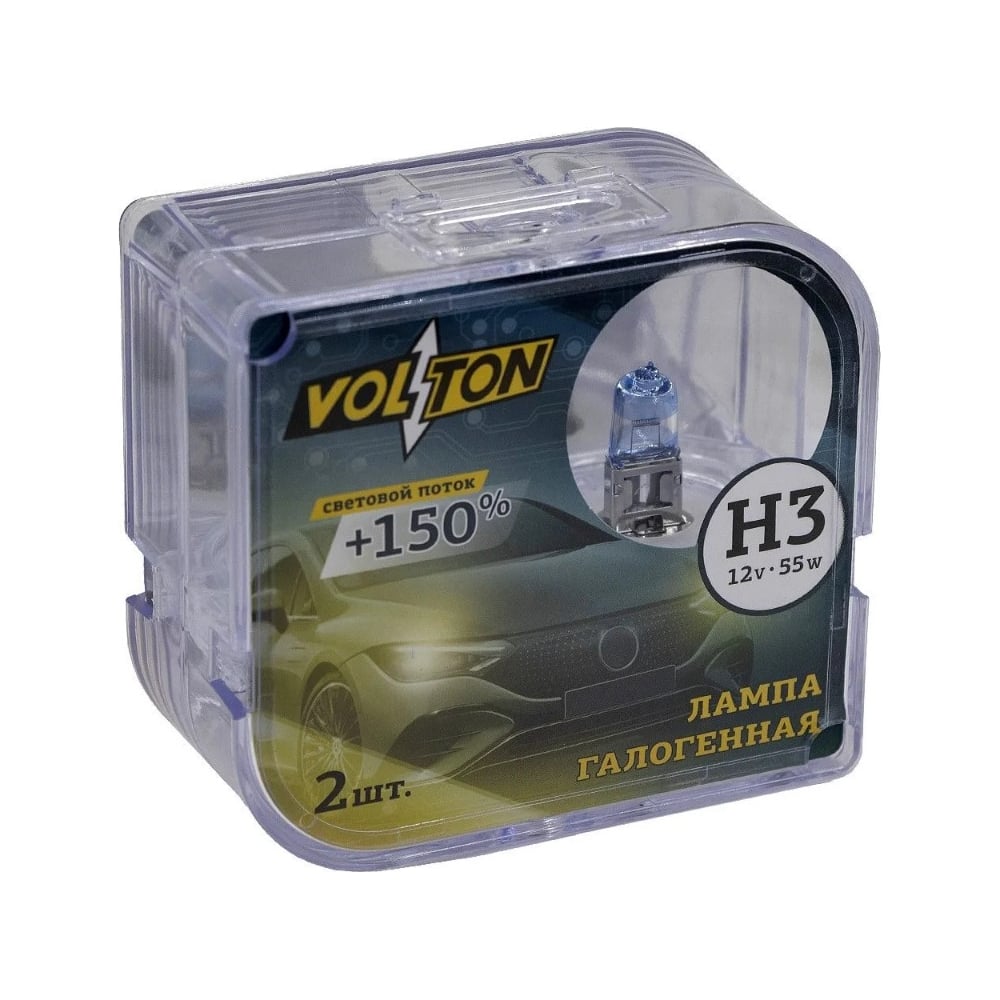 Галогенная лампа VOLTON H3, 12 В, 55 Вт, РK22S +150%, комплект 2 шт. VLT1504