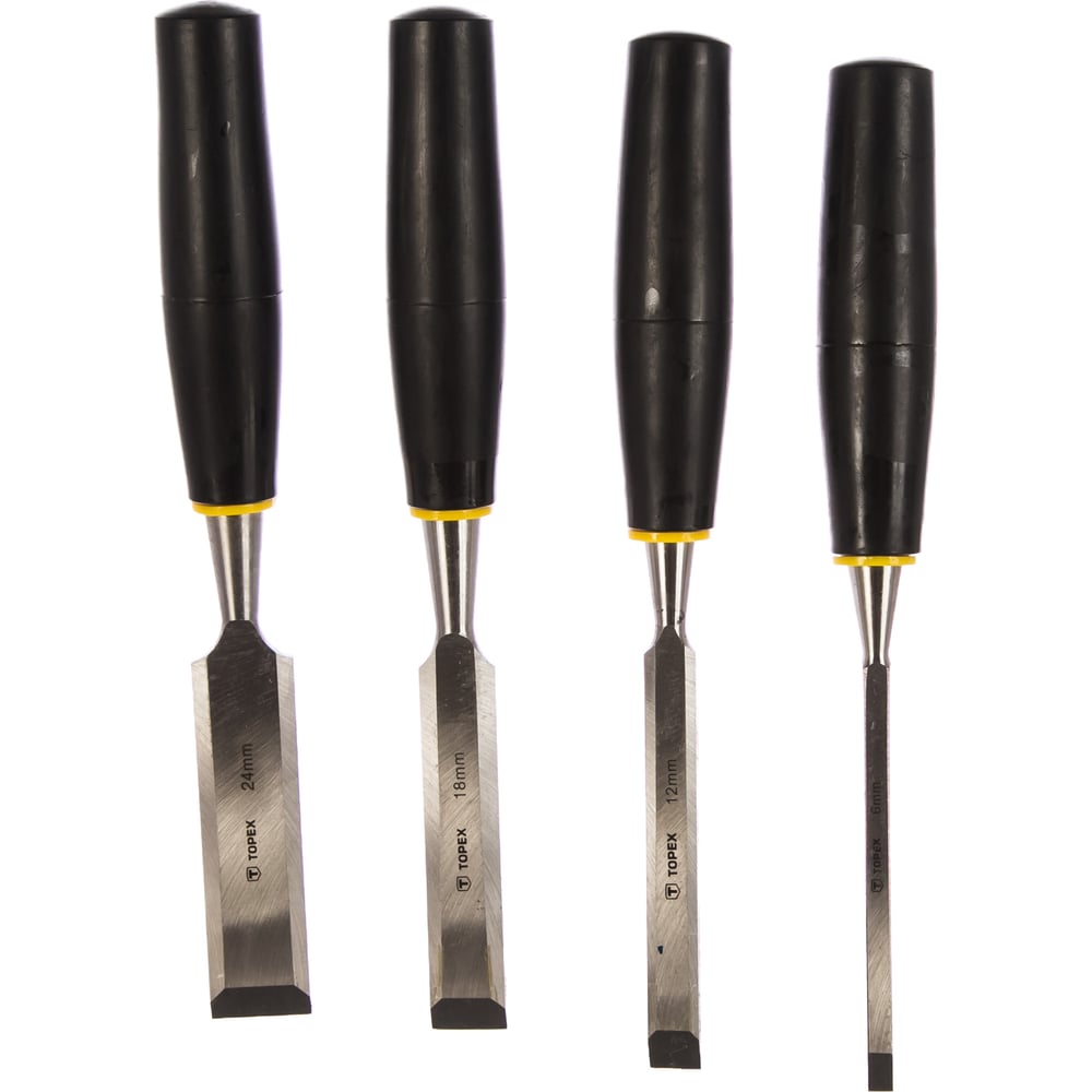 4 стамески по дереву: 6, 12, 18, 24 мм.