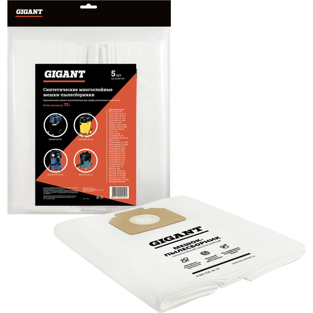 Мешки для пылесоса Gigant 5 шт., синтетические до 72 литров KR-BH 70/5 G-KR-BH-70/5