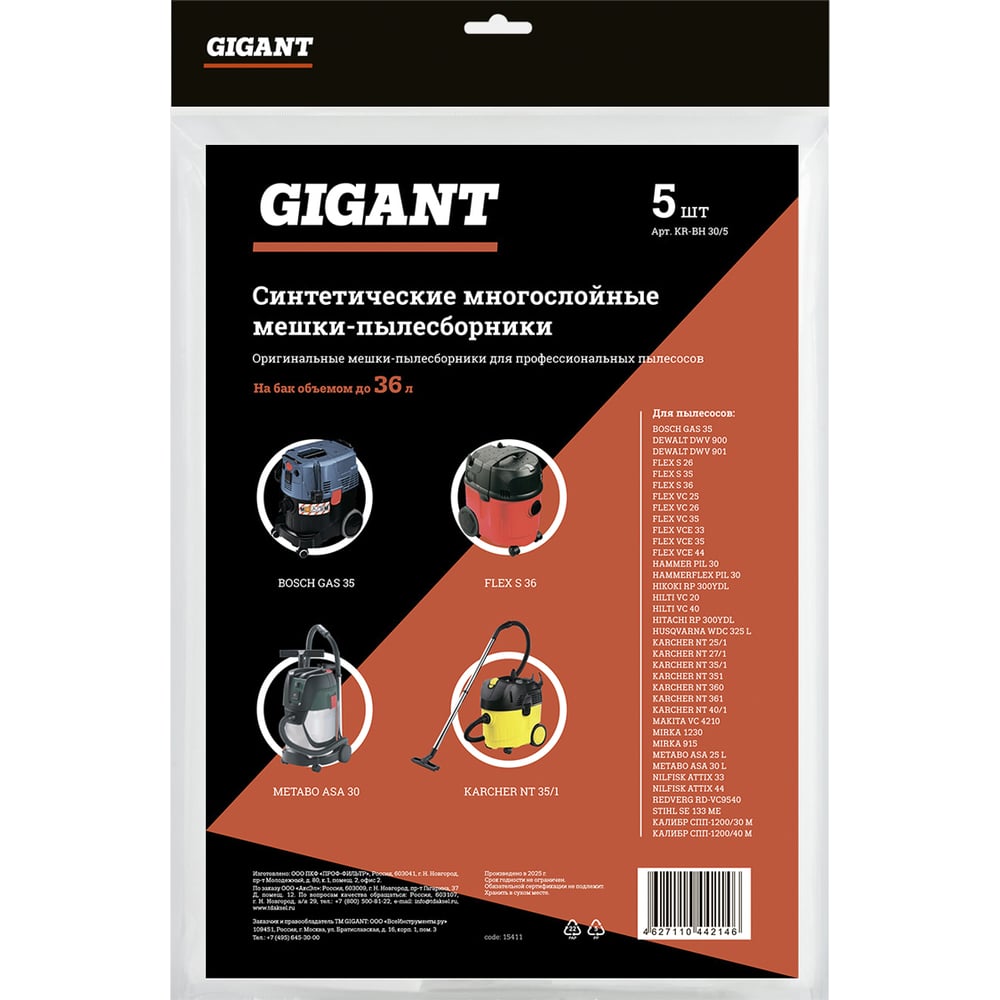 Мешки для профессиональных пылесосов 5 шт. до 36 л Gigant KR-BH 30/5 KR-BH30/5