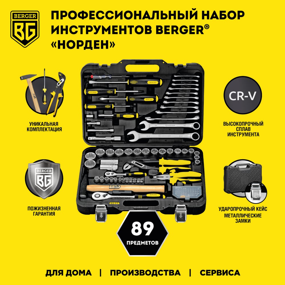 Набор инструментов 89 предметов Berger BG BG089-1214