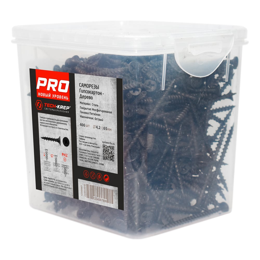 Длина 65 мм Тип резьбы редкая Тип фасовки шт. Материал сталь Покрытие фосфатированный Диаметр 4.2 мм Наличие пресс-шайбы нет Нержавеющая сталь нет Цвет покрытия черный Форма головки потайная Размер шлица PH2 Шлиц Phillips (PH) Наконечник острый Полная резьба нет Фасовка 1.326 кг Фасовка 400 шт