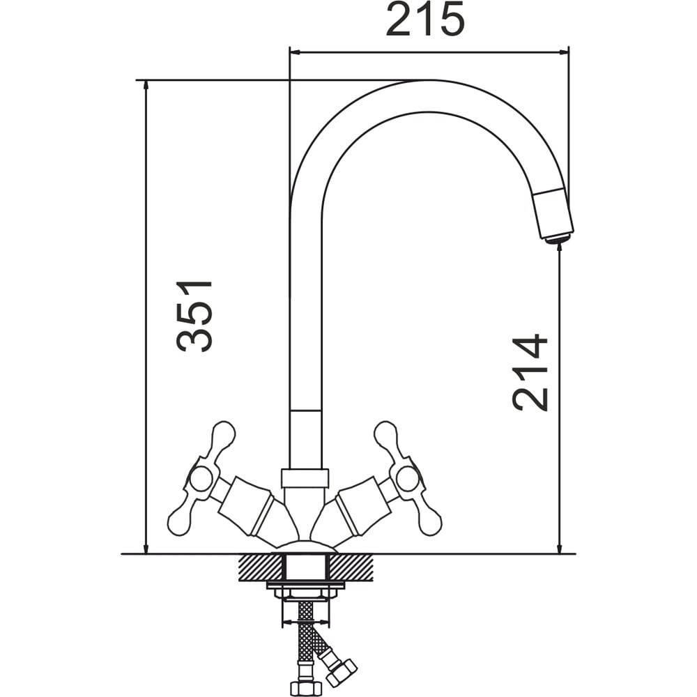 Покрытие хром-никель Цвет серый Тип установки настольный/на раковину Вес нетто 1.24 кг Стиль классический Материал корпуса цинковый сплав Серия BARCELONA Поворотный излив да Назначение для кухни Тип крепления на гайку Гибкий излив да Высота смесителя 351 мм Лейка нет Термостат нет Встраиваемый нет Подводка в комплекте гибкая Аэратор да Переключатель на фильтр нет Тип смесителя двухрычажный Форма излива воды традиционная Запорный клапан керамическая кран-букса Форма смесителя округлая Выдвижной излив нет Излив есть Складной нет С щеткой нет Двойной излив нет Направление струи под углом Диаметр отверстия в раковине 35 мм Форма маховиков крестик Высота излива 350 мм Расположение термостата без термостата
