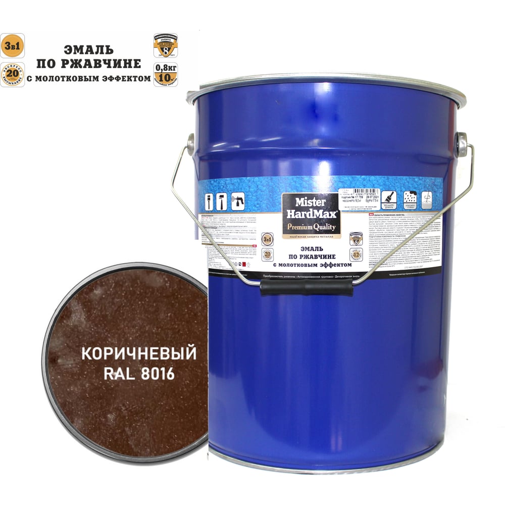 Эмаль по ржавчине с молотковым эффектом HardMax RAL 8016 коричневый, барабан 16 кг 4690417077793