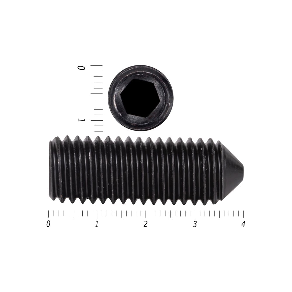 Установочный винт с внутренним шестигранником КРЕП-КОМП черный, DIN 914, 12x40, пр. 10.9, конический конец, 20 шт. вук1240