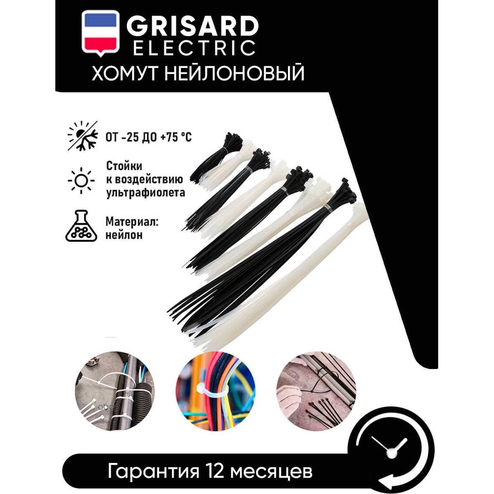 Хомут Grisard Electric 3,6x200 мм, нейлон, 100 шт. GRE-010-0012
