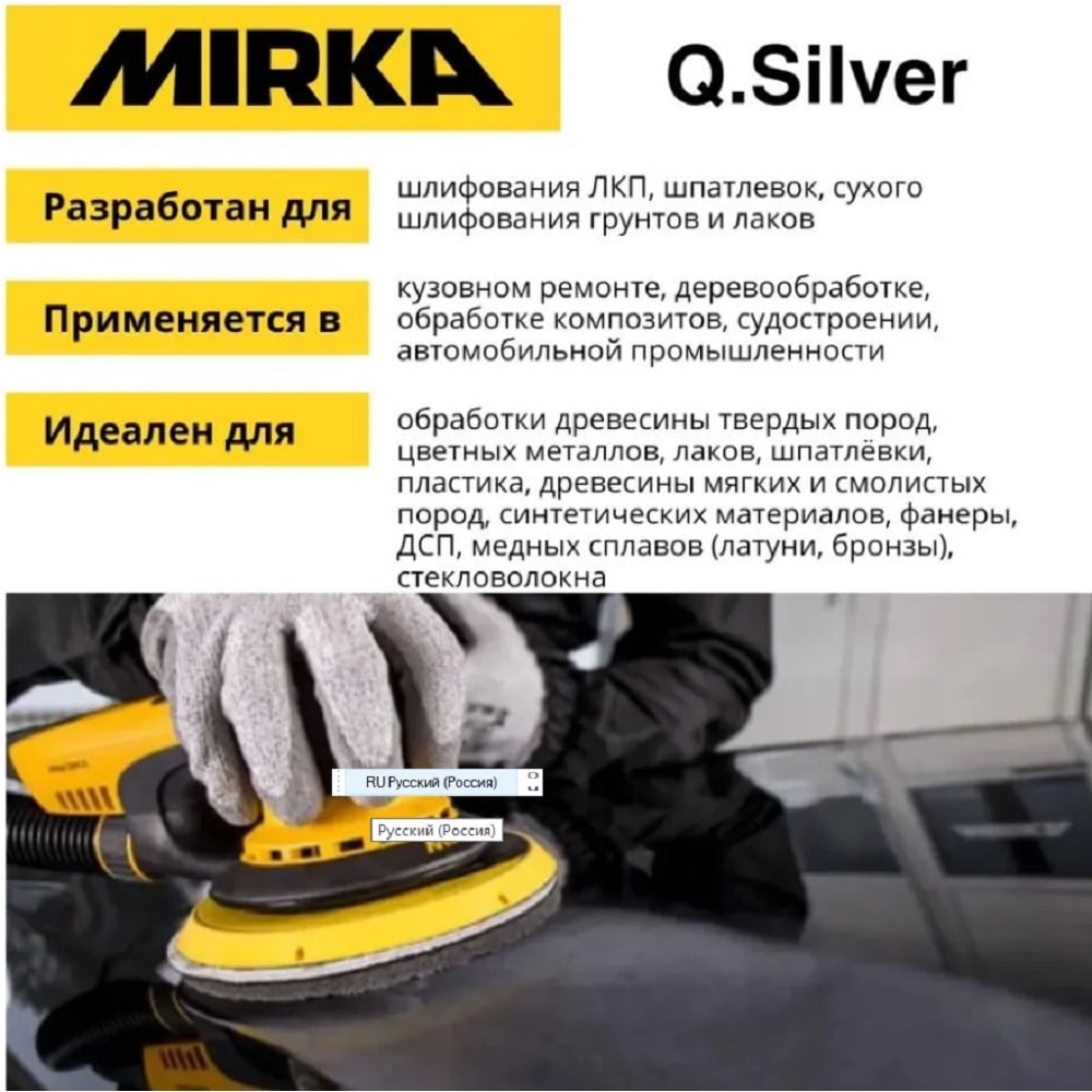 Шлифовальный материал для сухой обработки поверхности MIRKA Q.SILVER 3661109918