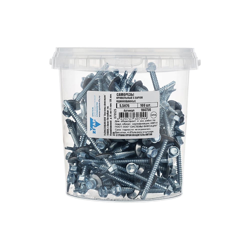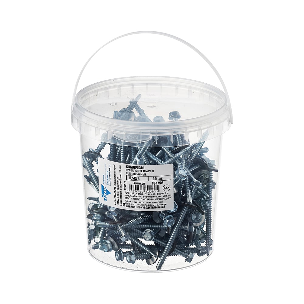 Саморез КР ZP со сверлом, 5,5x76 мм, 100 шт. в ведре Zitar 104756