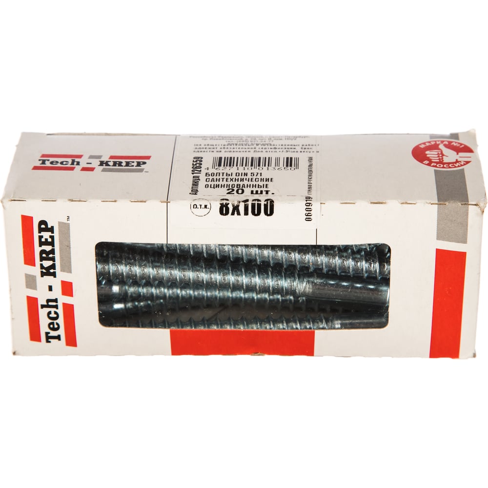 Сантехнический болт DIN 571 оцинкованный 8х100, 20шт - коробка Tech-Krep 126559