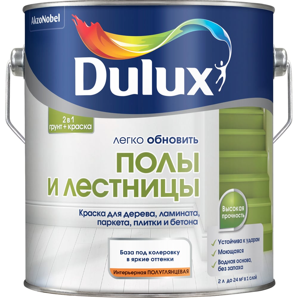 Краска Dulux полы и лестницы, полуглянцевая, BC, 2 л 5327415
