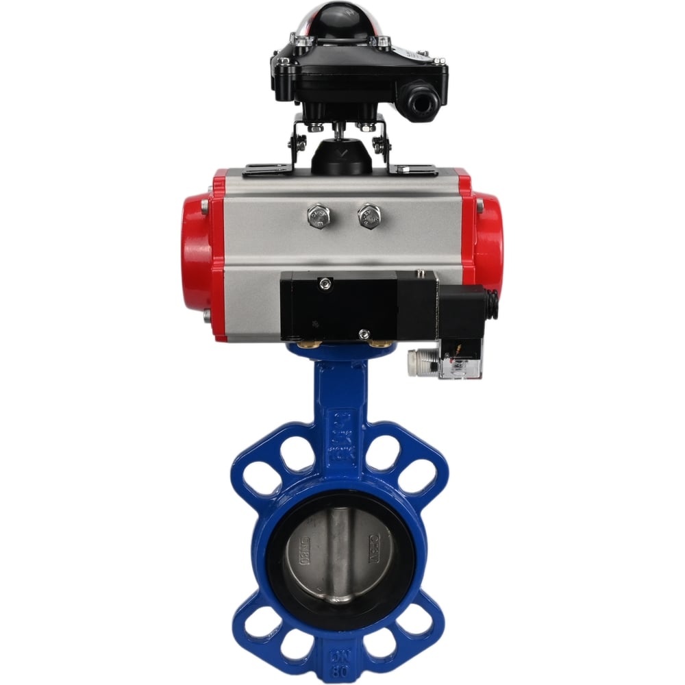 Затвор DN.ru GGG50-GGG40-EPDM Ду80 Ру16 с пневмоприводом, пневмораспределителем, БКВ D050-00244